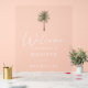 Panneau de bienvenue mariage tropical avec un simple palmier en haut du design avec "Welcome" affiché dans un script moderne de calligraphie blanche avec un arrière - plan acrylique transparent. Personnalisez le signe mariage de palmier avec vos noms, la date du mariage et l'emplacement du mariage. Le panneau de mariage tropical acrylique a été conçu pour coordonner avec notre collection de mariages minimaux de palmiers.
