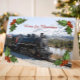 Prenez ce train à l'ancienne avec une montagne enneigée dans la maison arrière - plan pour les vacances. Avec des timbres-poste et des autocollants assortis, il fait une grande carte de vacances.