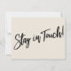 Gardez vos amis et votre famille à jour avec votre nouvelle adresse en utilisant ces cartes faire-part simples et élégantes. Vous pouvez les insérer dans vos envois sur le thème du mariage ou les partager en personne, selon vos besoins. Que vous soyez marié(e) ou que vous souhaitiez simplement un design unique pour que votre tribu sache comment vous trouver, cette carte est suffisamment polyvalente pour n'importe qui. Il présente de jolis graphismes typographiques qui lisent "Home Sweet Home" sur le devant et "Restez en contact !" sur le dos, en utilisant une police de script moderne, décontractée, manuscrite. Utilisez les champs modèle pour ajouter tous vos propres détails afin de personnaliser ce design pour votre propre usage. Le type noir a été placé sur un arrière - plan de crème modifiable ; vous pouvez le changer à n'importe quelle couleur que vous souhaitez. // 105 //