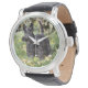 Uhr, Vintage Männeruhr mit schwarzem Lederarmband