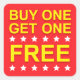 Carré, offre spéciale autocollants de détail avec le texte jaune "Acheter, obtenir un libre" sur un arrière - plan rouge avec des étoiles blanches au-dessus et au-dessous du mot "libre". Des autocollants de grande vente pour votre entreprise.