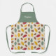 Eine Schürze mit einem Akorentmuster und ihren Herbstlauben auf hellbraunem Hintergrund und einem Vornamen oder Text Ihrer Wahl auf graugrünem Hintergrund. Ein hübsches Geschenk für einen Freund, der sich die Liebe verführt. Es kann auch in einem Laden oder im Garten verwendet werden, wenn Sie arbeiten!