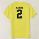 John Adams trägt T-Shirt mit Namen- und Zahlan Rückseite zur Schau