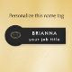 Customize this modern black and white name tag template. Add your business logo for a professional employee name tag. Add your name and your job title for a stylish ID badge. Personalize the minimalist white script for your purposes.