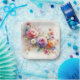 Add Your Text Custom Template Watercolor Flowers Blank Template 7" Square Paper Plate.