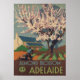 Adélaïde, affiche Vintage voyage australienne ornée d'un amandier en fleurs.