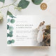 Elegante Aquarell Eukalyptus Hochzeitseinladung mit einem personalisierten Foto.