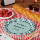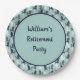These paper plate are ready to be personalized with your own custom message. They feature a border of wooden Adirondack chairs in navy blue, eggshell white and charcoal against a light aqua blue background with your message in the center in navy blue script lettering against a light aqua blue background.