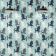 Diese Tapete mit Schale und Stick ist mit Abbildungen von Adirondack-Holzstühlen in marineblau, eggshell weiß und kohlegrau Set vor einem hellen aquablau gefärbten Hintergrund versehen.
