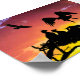 Zwei Adlerküken warten, wenn ein Elternteil von der Jagd kommt. Ihre Silhouetten stehen in krassem Kontrast zum feurigen Himmel der untergehenden Sonne. Computerkunst von Kathie Miller