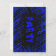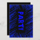 Invitations d'anniversaire pour un adolescent. Invitation de type "billet" en noir avec texte et bordure bleu vif. Type de grunge funky texte dans les couleurs foncées que les garçons aiment.