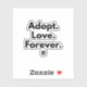 Minimalist sticker featuring the message “Adopt. Love. Forever.”