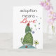 diese niedliche Adoptionsglückwunschkarte ist von einem kleinen Frosch durch zwei Blumen. Adoption ist Forever.