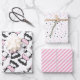 Dieses wunderschöne Set aus Wickelpapier verfügt über drei individuell gestaltete Blätter, die jeweils für eine besondere Touch Ihrer Geschenke geeignet sind. Das erste Blatt zeigt ein bezauberndes Kuhmuster auf weißem Hintergrund und ist somit eine ideale Wahl für Tierfreunde oder für Kinderveranstaltungen. Das zweite Blatt hat klassische diagonale rosa und weiße Streifen und bietet einen vielseitigen und zeitlosen Look, dass Anzug jeder Gelegenheit. Das dritte Blatt ist mit einem spielerischen Muster aus rosa, grauen und schwarzen Punkten auf weißem Hintergrund geschmückt und bietet eine moderne und stilvolle Option für trendige Geschenkmomente. Jedes Blatt koordiniert wunderschön mit den anderen, sodass Sie eine zusammenhängende und charmante Präsentation erstellen können, wenn Sie mehrere Geschenke an dieselbe Person bei der gleichen Veranstaltung geben. Dieses Set eignet sich perfekt für alle, die ein charmantes und skurriles Design genießen. Es kann für verschiedene Feiern genutzt werden, von Babyduschen bis zu Geburtstagen. Egal, ob Sie Geschenke für Freunde, Familie oder Kollegen packen, diese Designs werden dem Empfänger sicher ein Lächeln ins Gesicht bringen.