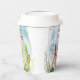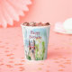 Aquareller Llama mit herzförmigen Gläsern und einem Geburtstagshut mit Wüstenlandschaft im Hintergrund.