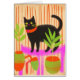 Eine bezaubernde schwarze Katze auf einem wunderschönen rosa Tisch mit von der AI generierten Hauspflanzen