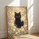 Bring a touch of whimsical charm to your home with this delightful poster featuring an adorable black cat with big, golden eyes, nestled among a vibrant field of colorful daisies. This enchanting design captures the playful spirit of a curious feline exploring a blossoming meadow, making it a perfect addition for cat lovers, flower enthusiasts, or anyone seeking a cozy and cheerful aesthetic.