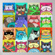Ein niedliches Set handgezeichneter Doodle Katze Portraits, die einen gefliesten Mosaikhintergrund bilden.