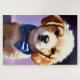 Schau dir diese Süsse an! Ich habe gerade ein neues Tierportrait eines flauschigen Welpen mit einer hübschen blauen Bogen-Krawatte fertig gestellt - könnte es etwas Süßeres geben? 🐶
