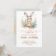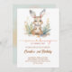 Eine bezaubernde Geburtstagseinladung mit einem niedlichen Hasen. Alle Texte können bearbeitet werden, sodass die Einladung für ein anderes Alter verwendet werden kann.