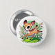 Ein lebendiger Knopf mit einem niedlichen Cartoon Hirsch. Das Reh hat braunes Fell mit weißen Flecken und wird durch ein großes, grünes Grasfeld mit fröhlicher Darstellung dargestellt. Im Gras sind verschiedene Wildblumen verteilt, der Hintergrund ist weich und grün. Der allgemeine Ton des Bildes ist spielerisch und fröhlich.