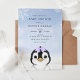 Baby shower invitation avec un adorable pingouin aquarelle. Personnalisez avec vos informations ou cliquez sur "cliquer pour customiser plus loin" pour ajuster le type de police, la taille, la couleur.