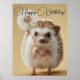 Ein unglaublich niedliches und charmantes nah-Up eines winzigen Igels, der auf seinen Hinterbeinen stehend ist und einen großen, flauschigen Kronleuchter mit einer Pfote hält. Der Igel hat einen süßen, unschuldigen Ausdruck, und der weiche, neutrale Hintergrund unterstreicht seine zarten Eigenschaften und die würzigen Quillen.