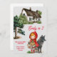 Diese illustrierte Einladung wäre gut geeignet für eine Babydusche oder eine Geburtstagsfeier für junge Mädchen. Dieses Design besticht durch eine hübsche Hütte, Waldbäume und ein kleines Mädchen in ihrer roten Kapuze, neben einem Wolf. Ich hoffe, dass dies die perfekte Einladung für Ihre Veranstaltung ist.