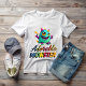 The design consists of a funny and friendly gradient green monster, with several yellow and red jars that seem to come out of its head. His bulging, mischievous eyes, along with an adorable smile, give him a special charm. Complementing the design, a multicolored cursive sign reads "Adorable Monster." This design combines fun and colorful elements, creating a charming and unique image. Ideal for girls.