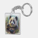 Peinture de mignons jeunes panda mangeant des sprigs de bambou vert