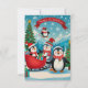 Diese skurrile Weihnachtskarte besticht durch eine fröhliche Winterlandschaft, in der bezaubernde Pinguine die Urlaubssaison feiern. In der Nähe parkt ein roter Schlitten mit fröhlichen Geschenken. Die Karte wird mit spielerischer Typografie betont, in der es heißt: "Wünschen Sie sich einen schönen Urlaub!" in eleganten Buchstaben, was den festlichen Charme noch verstärkt.
