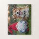Adorable Plush Gnome and Fluffy Dog Lying in Grass