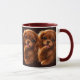 Adorable Ruby Cavalier Spaniel mug. The Spaniel is licking it's Paw in a cute pose.