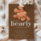 Fêtez l'arrivée prochaine de votre petit avec notre Invitation de Baby shower de l'ours en peluche We Can Bearly Wait. Cette charmante invitation présente un adorable design d'ours en peluche marron, parfait pour donner un ton chaleureux et accueillant à votre baby shower. Avec un espace suffisant pour tous les détails essentiels, vos invités seront heureux de participer à la célébration. Faites votre baby shower inoubliable avec cette invitation douce et fantaisiste qui capte la joie d'accueillir un nouveau bébé.