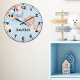Brighten up your child's room with this charming personalized wall clock! Featuring a cuddly teddy bear holding colorful balloons against a soft light blue background, this clock adds a touch of sweetness and whimsy to any space. Customize it with your child's name for a special and unique touch. A perfect gift for birthdays, baby showers, or nursery decor!