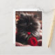An adorable fluffy black kitten with a rose and heart AI generated Valentine art