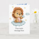 Sweet-Image an einem Geburtstag, einem neuen Baby oder einer Babyduschkarte mit einem niedlichen Löwen-Cartoon auf einer Wolke. Klicken Sie auf "Diese Vorlage personalisieren", um die Karte mit Ihrer Nachricht auf der Vorderseite und im Inneren anzupassen. Sie können auch den Beispieltext löschen und später Ihre eigene Nachricht schreiben.
