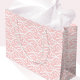 Eine schlichte und stilvolle Geschenktasche mit hübschem Bandbogenmuster in einer Farbpalette aus Rosa und Weiß. Eine perfekte Ergänzung zu Ihrer Geschenkpackung für alle Arten von Feiern, einschließlich Geburtstage, Babyduschen, Muttertag, Hochzeiten und mehr! Rosa und weiße Farbpalette, mit matt oder glänzend lackiert.