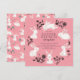 Adorable Osterdinner Einladung mit weißem bunnies Set auf einem rosa Hintergrund mit einem koordinierenden Hasen hinten.
