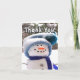 Ein Dankeschön in dieser bezaubernden Schneemannskarte wird sicherlich jedem ein Lächeln ins Gesicht bringen. Er trägt einen leicht schneebedeckten blauen Tassel-Hut und einen blauen Schal. Seine Augen und Mund sind aus kleinen schwarzen Sequinen, und Nase eine schneebedeckte Karotte. Schneemann und Foto von Designer.