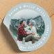 Un modèle d'autocollant rond d'adresse de retour de photo simple en gris bleu, que vous pouvez facilement mettre à jour avec votre nom adresse et photo personnalisée !