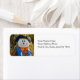 Diese fröhliche Skarele lächelt euch von einem sonnigen Kürbispflaster an, unterstützt von einem trockenen Kornstalk. Es hat eine weiße Stofffläche mit Augen, Nase und Mund gezeichnet, überragt von einem blauen Tuch, der eine gelbe Blume trägt. Es trägt ein blaues und orangefarbenes kariertes Shirt mit blauer Weste und orangefarbener Krawatte. Ich nahm dieses Foto, ein Symbol für Ernte und Halloween-Zeit, in einem Pick-your-own-Kürbispflaster in Puyallup, WA. Copyright Gail Storrs 2009.