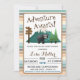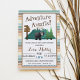Adventure Await Camping Baby shower Invitation dispose d'un arrière - plan de montagne, d'ours et de sentiers. L'Aventure Attend ! Customisez votre invitation ! Invitations sur mesure et abordables, imprimées Baby Shower personnalisées avec vos détails. Cette conception comprend un Utilisez les outils de conception pour customiser le texte, modifier les polices et les couleurs ou ajouter vos propres photos pour créer une invitation amusante à la fête.