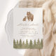 Laden Sie Freunde und Familie ein, ein kleines zu feiern, auf dem Weg mit dieser waldbezogenen Duscheinladung, mit Aquarellkiefern und Bären in gedämpften Farben.
