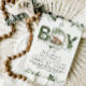Adventure Begin Woodland Deer Baby Boy Dusche Einladung