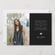 Modern and elegant graduation announcement photo card featuring 3 photos on the front and 1 on the back. The text says "the adventure begins." Add the graduate's name, information, and message to personalize this card. Black color.