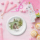 Niedliches Babyduschdesign in Aquarellfarbe eines Mama-Luchses und ihres Babycubs im Wald mit Kiefern. Vorlage für den Namen und das Datum, das für Sie erstellt wurde.