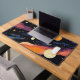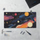 Elevate your workspace with this aesthetic cosmic galaxy desk mat, featuring a modern illustration of stylized planets, stars, and swirling nebulae. The vibrant color palette of burnt orange, purple, and navy adds a trendy, retro-futuristic vibe to any home office or gaming setup. This high-quality astronomy-themed decor is perfect for anyone looking to add a touch of the outer space to their daily routine.