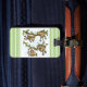 Monkey Shine-T - Shirts, Taschen, Tassen, Karten, Aufkleber, Schlüsselanhänger, Kissen, Zeitschriften, mousepads und anderes Affekleid und Geschenkeigenschaften vier niedliche braune Affen, die von den Baumniederlassungen schwingen und Bananen gegen einen Himmel des Blaus essen.