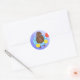 Ein alberner Cartoon Affe, der in einem Schlauch in einem Wasserbecken spielt. Farbenfrohe Strandbälle um ihn herum, er hat eine tolle Zeit in der Sommersonne auf diesem Aufkleber.